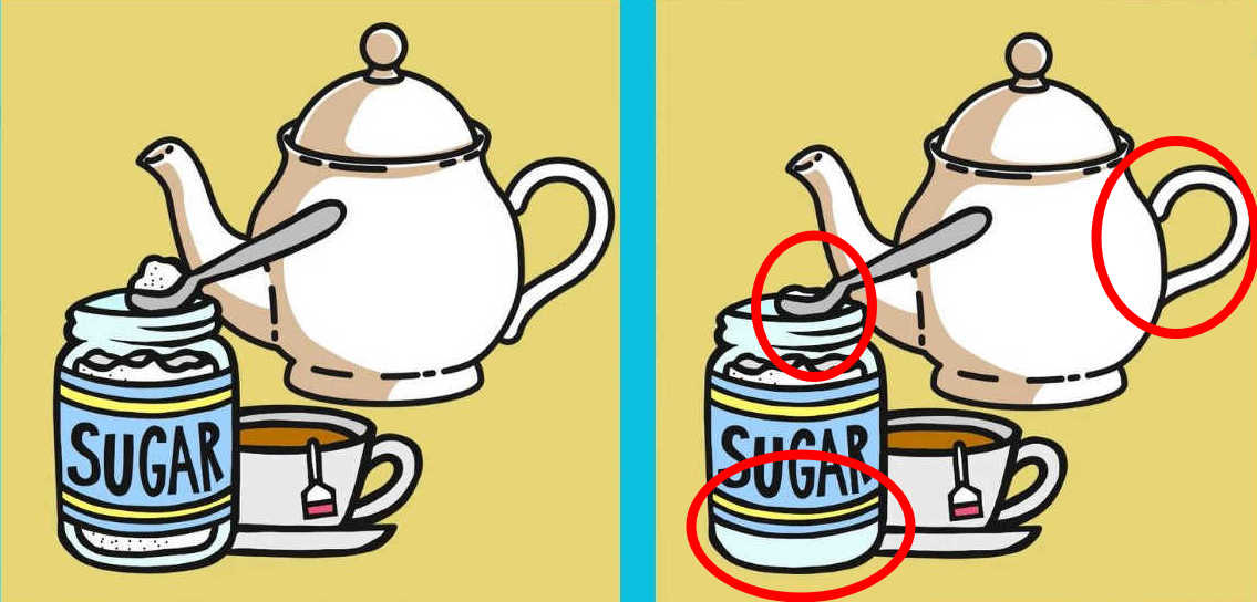 - Spot 3 differences in 2 tea table pictures in 9 seconds.