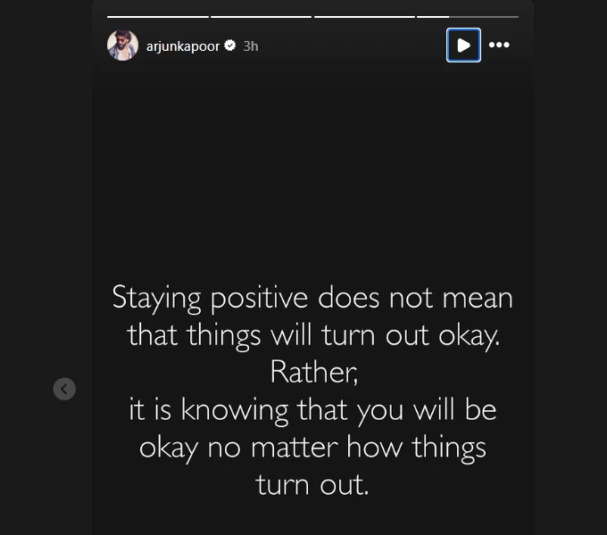 Arjun took to Instagram with a poignant note about handling life’s challenges. He wrote, “Staying positive does not mean that things will turn out okay. Rather, it is knowing you will be okay no matter how things turn out.” This message reflects his attitude towards staying strong through tough times, regardless of the situation.