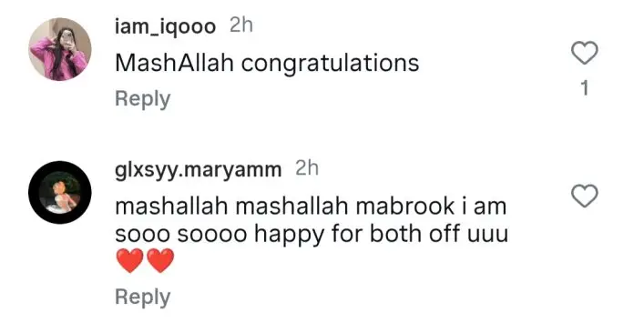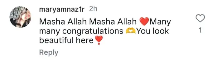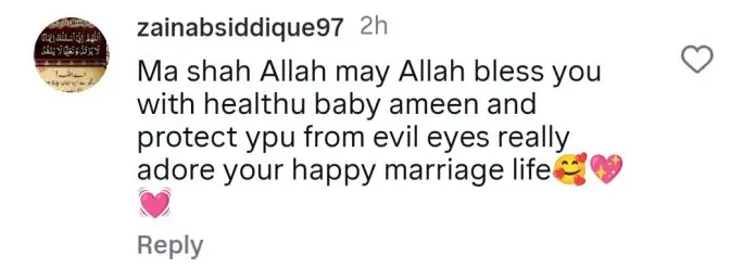 The internet is flooding with congratulatory messages for the couple. One user wrote, “MashaAllah. May Allah bless you with an obedient child.” Another shared, “I’ve followed your journey from the very beginning—so happy for you!” A third added, “May Allah bless you with an easy and safe arrival.” Here’s how fans are celebrating the couple’s joyful news:
